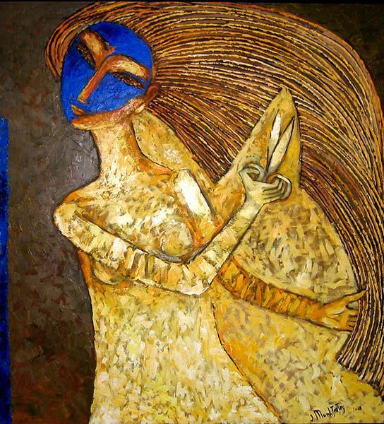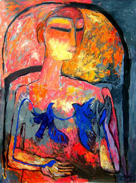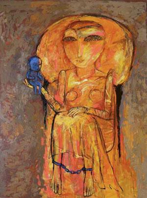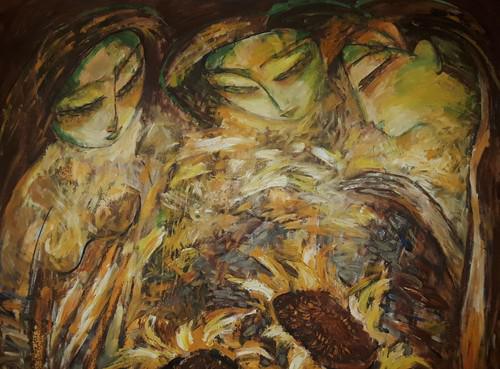 Munkhtsetseg Jalkhaajav’s career spans over three decades and includes exhibitions in Mongolia, Asia, Europe, and beyond. Her work blends traditional Mongolian symbolism with contemporary techniques, often exploring the female experience and spiritual themes.