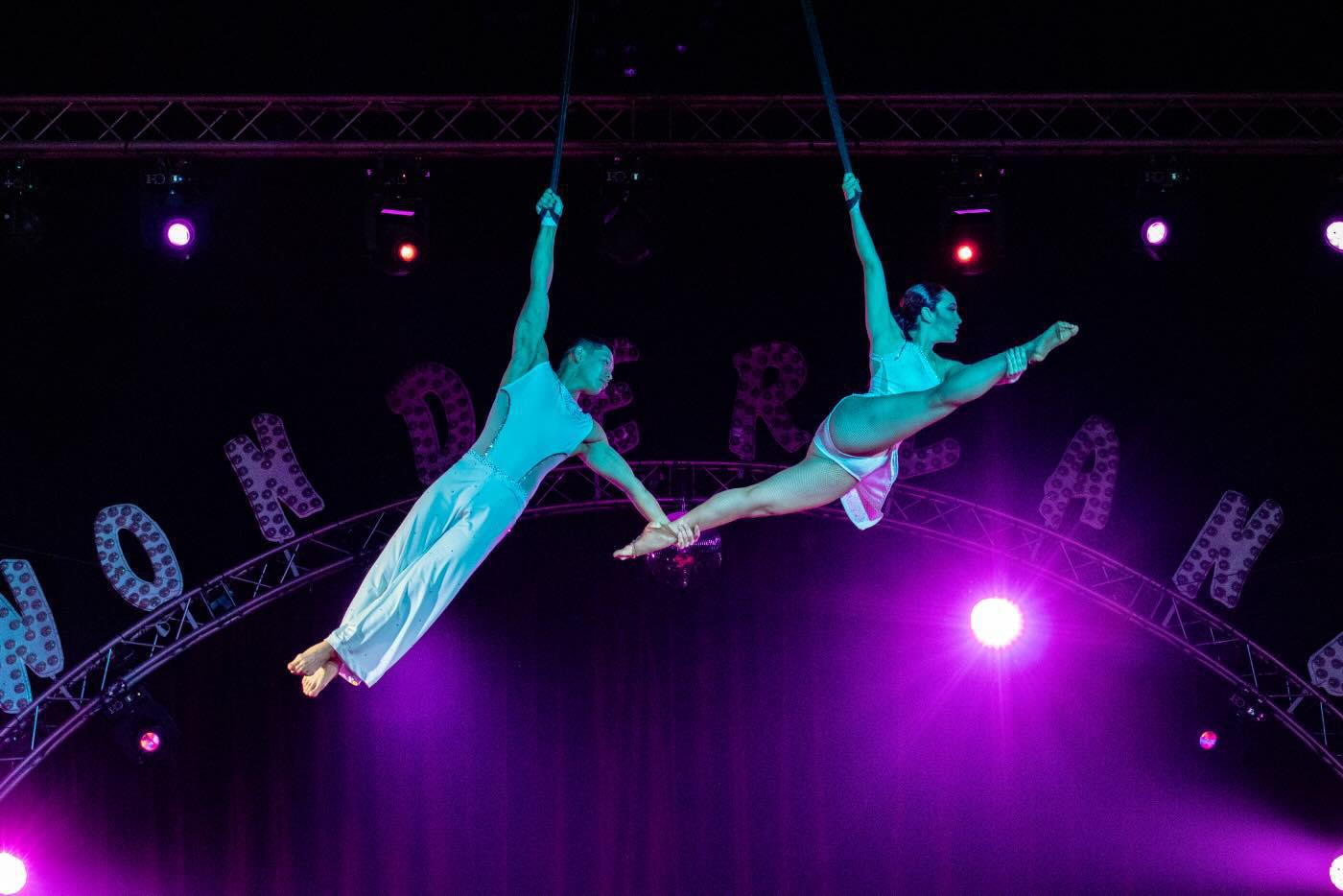 Working together on stage for the first time was not easy. She had never done an aerial acrobatics act before. I remember her face before going on stage: nervous, scared, trying to control it.