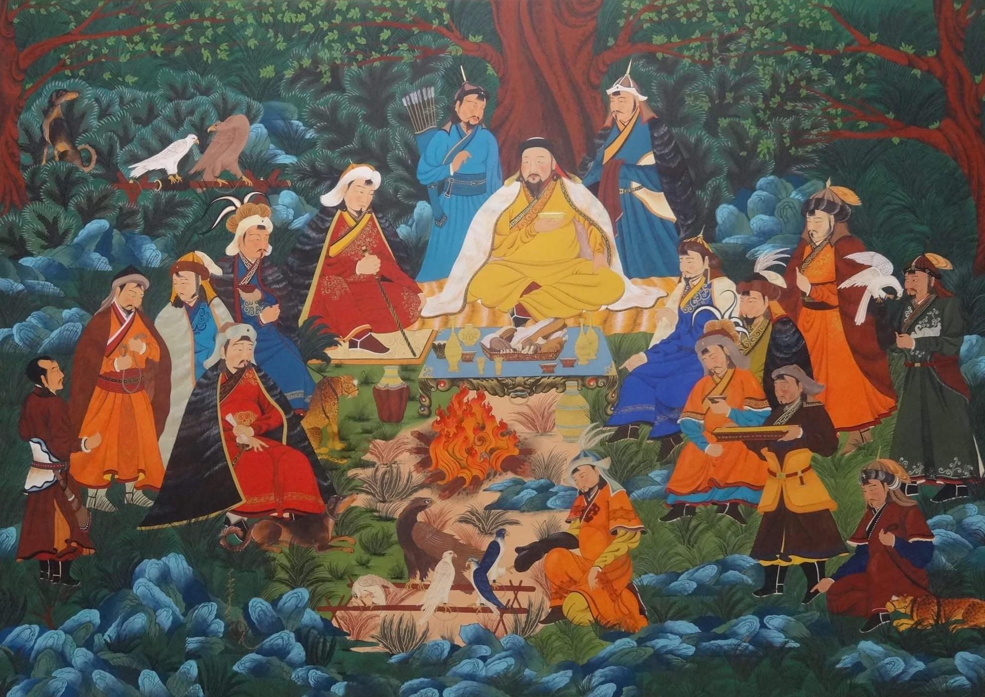 Every detail in a Zurag painting is encoded with meaning through traditional Mongolian patterns: