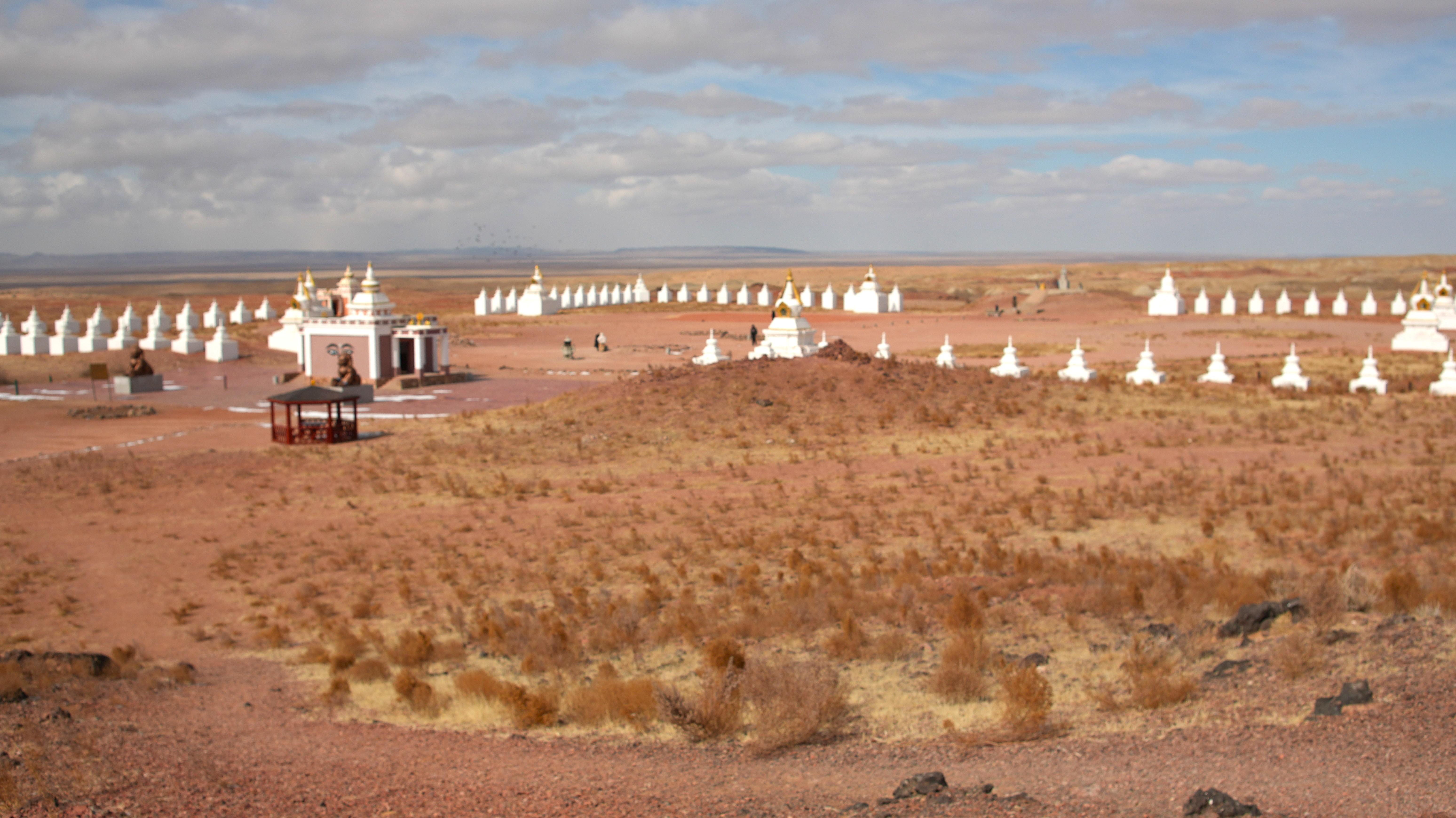 The most striking feature of the Energy Center is the massive rectangular perimeter formed by 108 white stupas. In the Nyingma tradition of Khamaryn Khiid, these stupas act as a spiritual battery, containing and intensifying the natural energy of the volcanic Gobi soil. Walking the perimeter of these stupas is a meditative act, meant to prepare the mind before entering the central "high energy" zone.